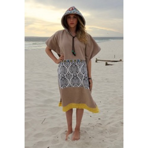 This 'Cuvabitz' Beach poncho is made from Taupe coloured Microfibre with a cotton print lined hood and pocket.